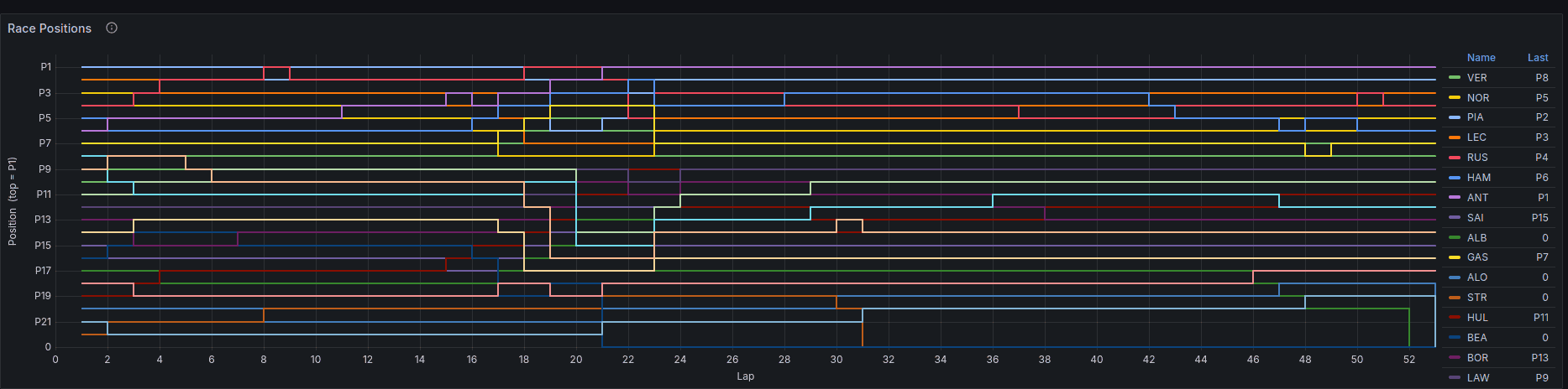 As mentioned before, the data from the API had some gaps so the analysis and visualisation might not be entirely accurate. Pit stop times and speed trap data seems a bit off as well. I would recommend using a more reliable data source for any serious analysis.